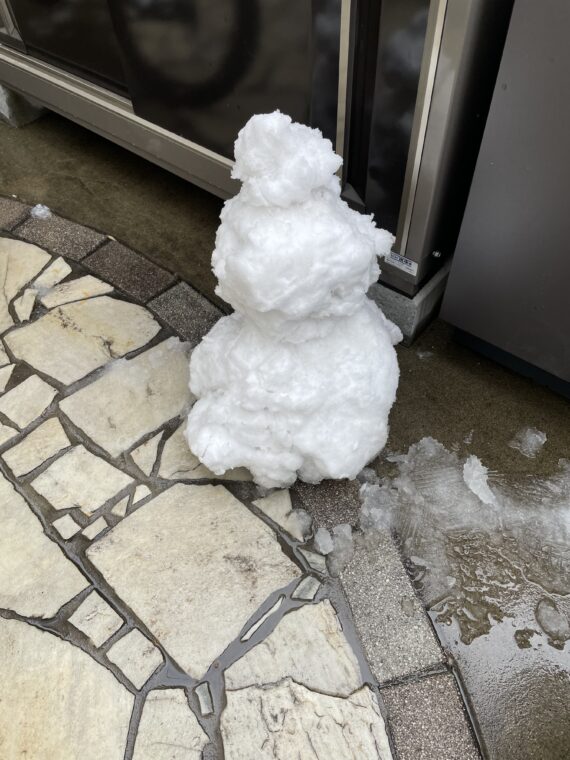 お隣の少年が作ってくれた雪だるまがカワイイね♪