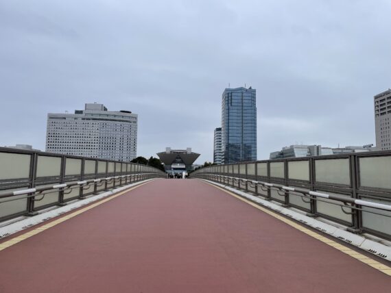 途中、日本のテニスの殿堂である、有明コロシアムを通過し、目的地に向かいます。